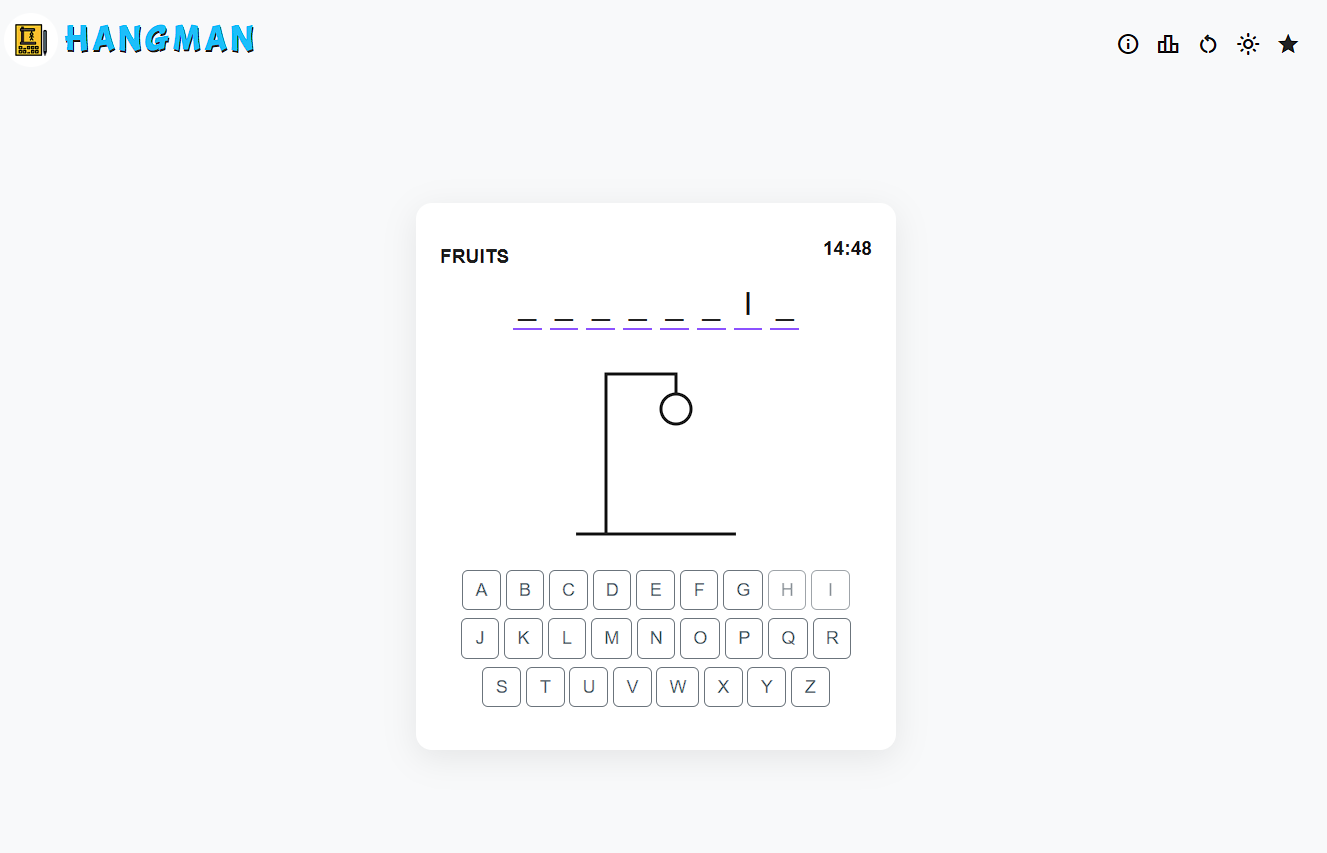 The rules are simple: 1️⃣ Pick a category to start your game. 2️⃣ Guess letters by clicking on the interactive keyboard. 3️⃣ If you guess correctly, the letter appears in its place in the word grid. 4️⃣ If you make a mistake, a Hangman figure slowly takes shape. 5️⃣ You only get six incorrect guesses—after that, it's game over!